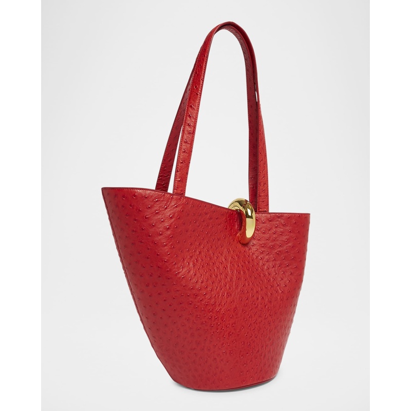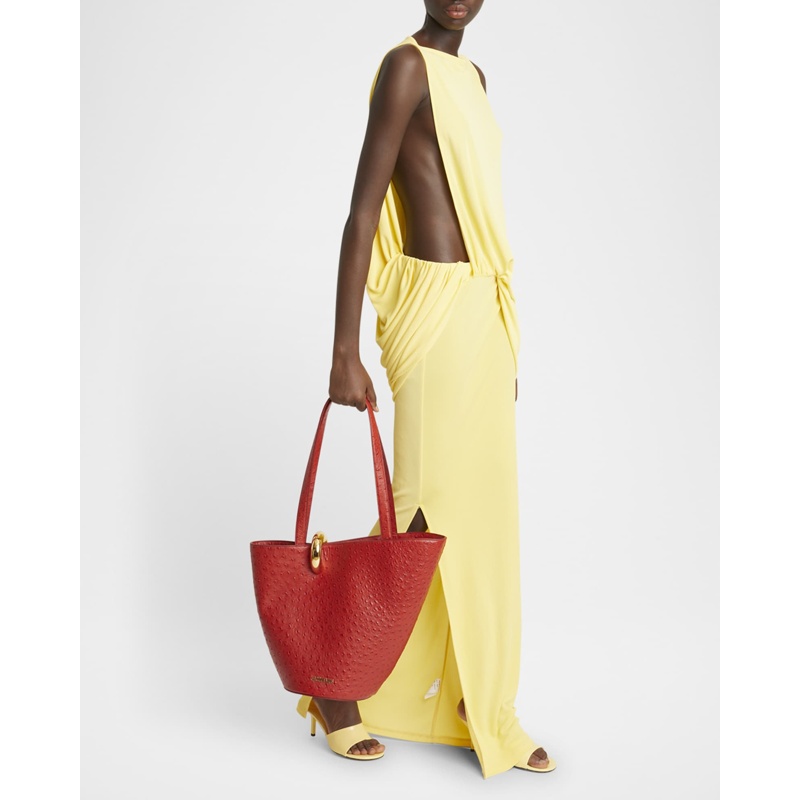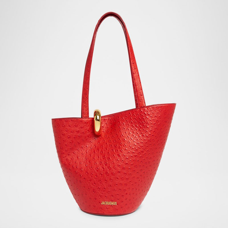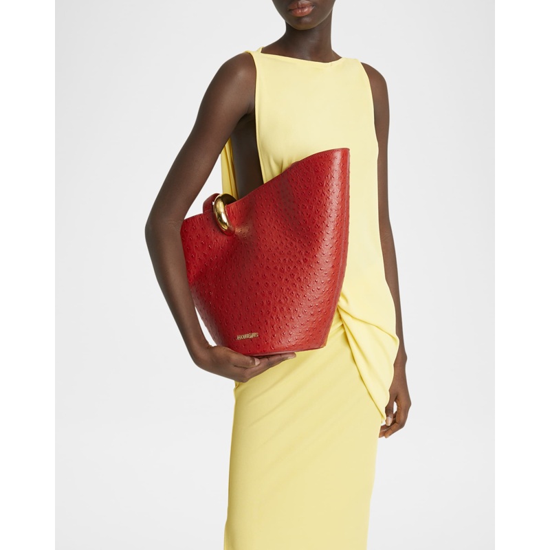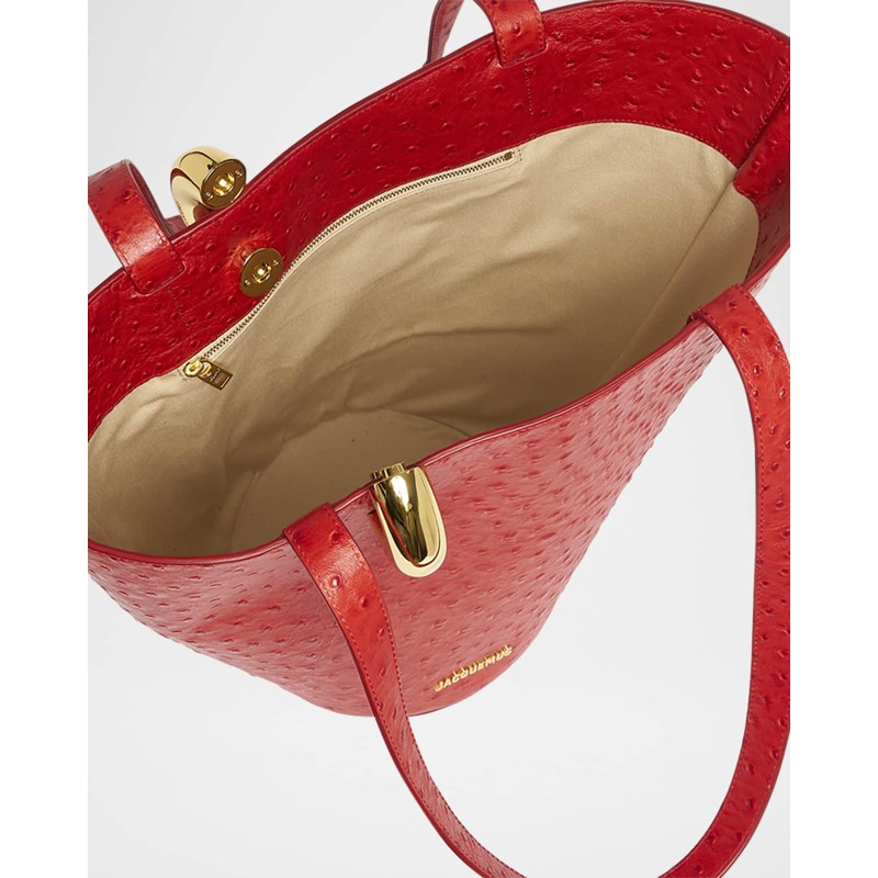 A Jacquemus Bolsa Shopper Le Bambola Moyen Ostrich-Embossed interpreta o estilo Shopper em design de ombro, com volume generoso e linhas limpas. Materiais como couro exótico, com alça de ombro.