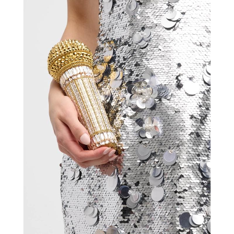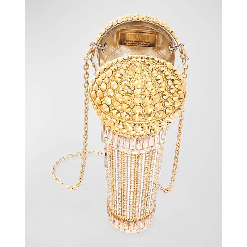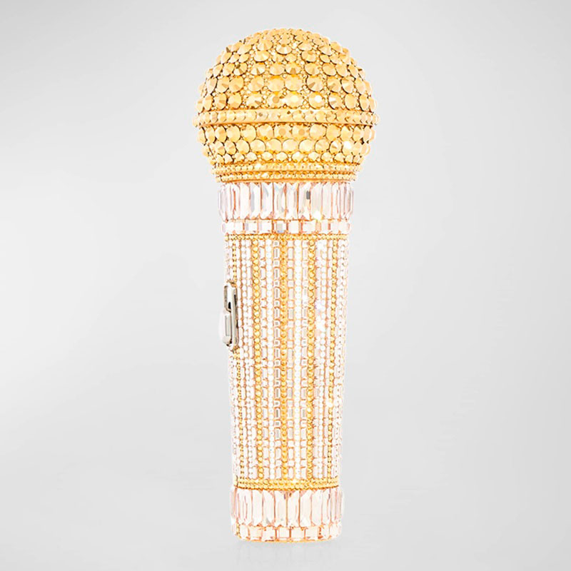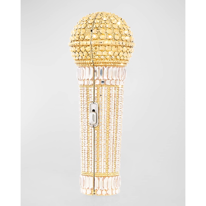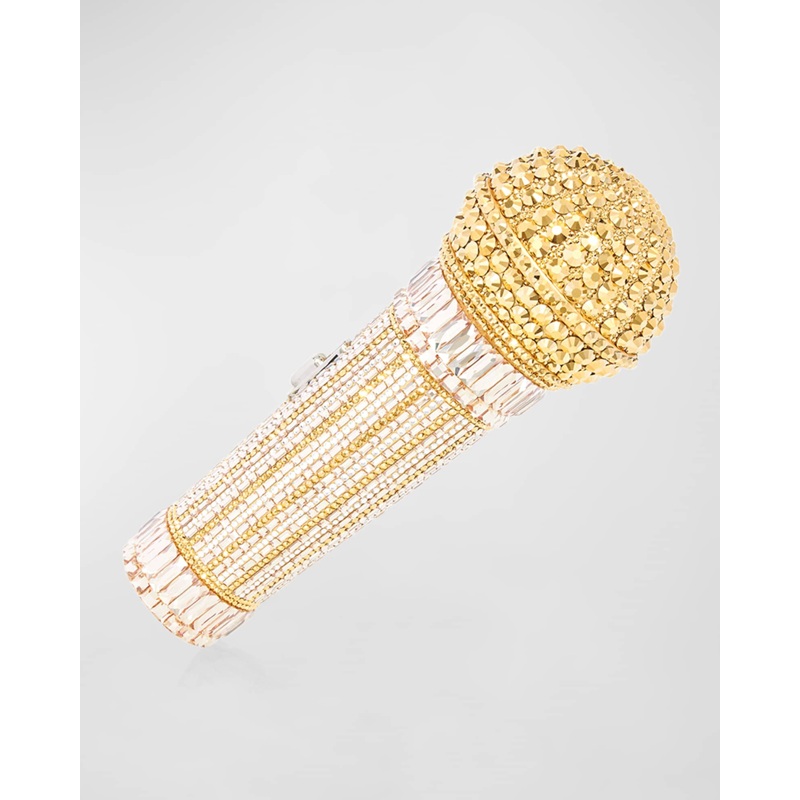 A Judith Leiber Couture Bolsa Clutch Microphone Crystal with Chain Strap interpreta o estilo Clutch em design de mão, com perfil minimal com foco em acabamento e proporção. Com alça de corrente.