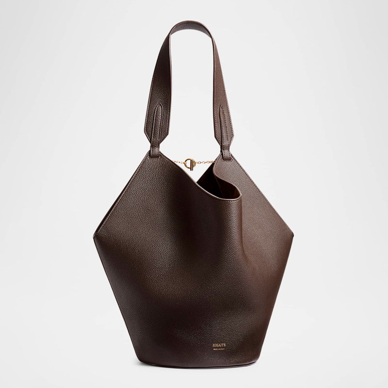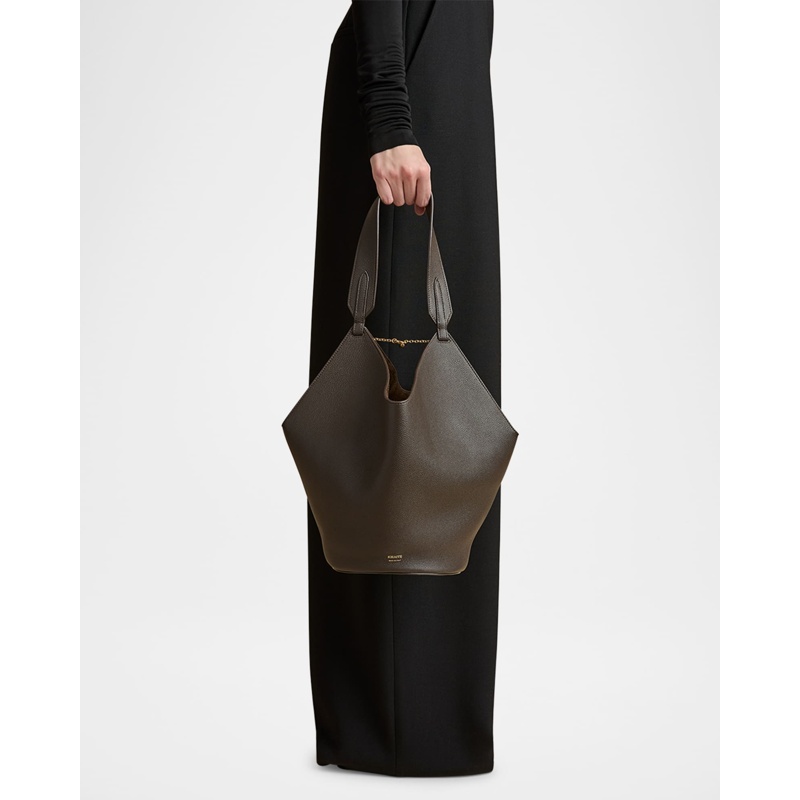 A Khaite Bolsa Shopper Lotus Small Grommet Calfskin interpreta o estilo Shopper em design de ombro, com volume generoso e linhas limpas. Com alça de ombro.