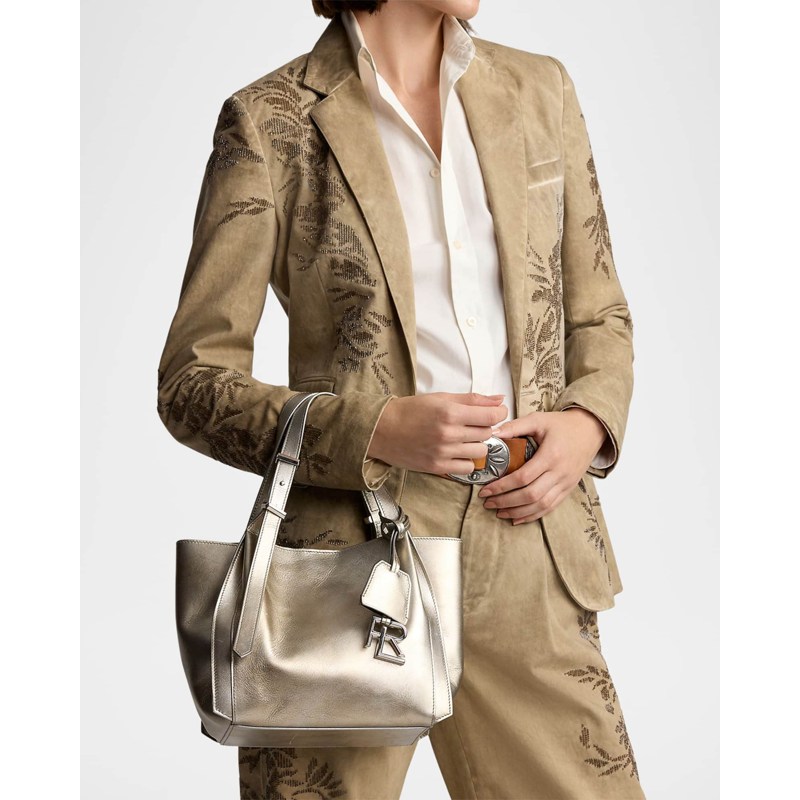 A Ralph Lauren Bolsa Shopper RL 888 Small Metallic Calfskin interpreta o estilo Shopper em design de ombro, com volume generoso e linhas limpas. Com alça de ombro.