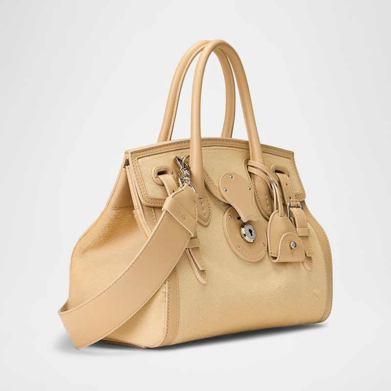 A Ralph Lauren Bolsa Handle Ricky 27 Calf Hair interpreta o estilo Handle em design de mão, com arquitetura definida com presença feminina e estrutura impecável. Com alça de mão.