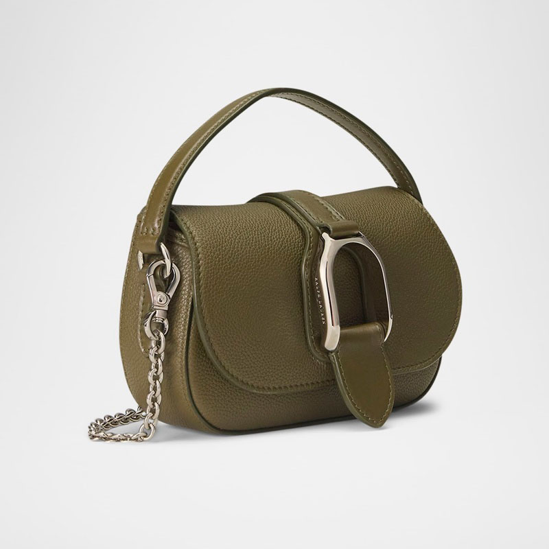 A Ralph Lauren Bolsa Handle Welington Mini Flap on Chain interpreta o estilo Handle em design de mão, com arquitetura definida com presença feminina e estrutura impecável. Com alça de corrente, alça de mão.
