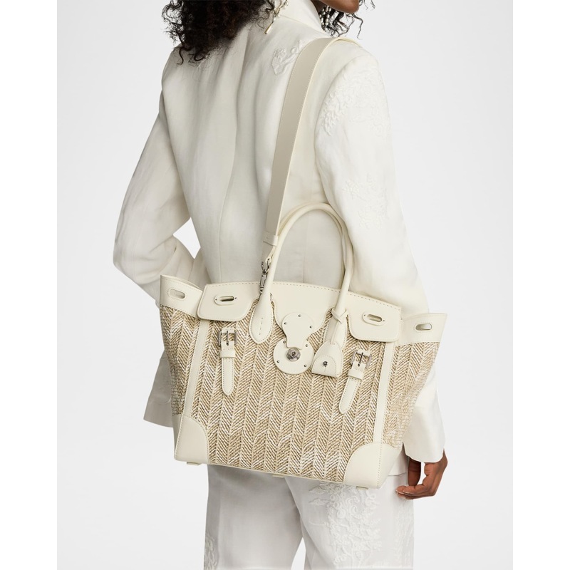 A Ralph Lauren Bolsa Shopper Ricky 33 Herringbone Woven interpreta o estilo Shopper em design de ombro, com volume generoso e linhas limpas. Com alça de ombro.