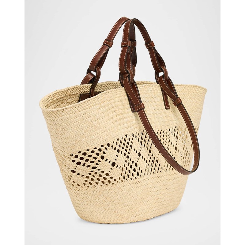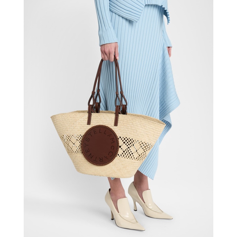 A Stella McCartney Bolsa Shopper Small Logo Raffia Basket interpreta o estilo Shopper em design de ombro, com volume generoso e linhas limpas. Materiais como rafia/palha, com alça de ombro, detalhes...