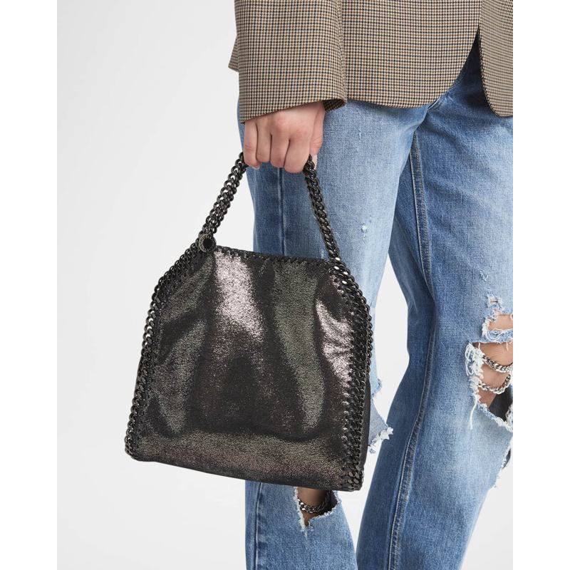 A Stella McCartney Bolsa Shopper Falabella Mini Metallic Vegan interpreta o estilo Shopper em design de ombro, com volume generoso e linhas limpas. Com alça de ombro.