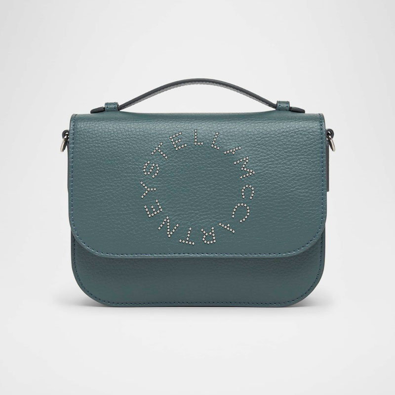 A Stella McCartney Bolsa Handle Studded Logo Grainy Vegan interpreta o estilo Handle em design de mão, com arquitetura definida com presença feminina e estrutura impecável. Com alça de mão.