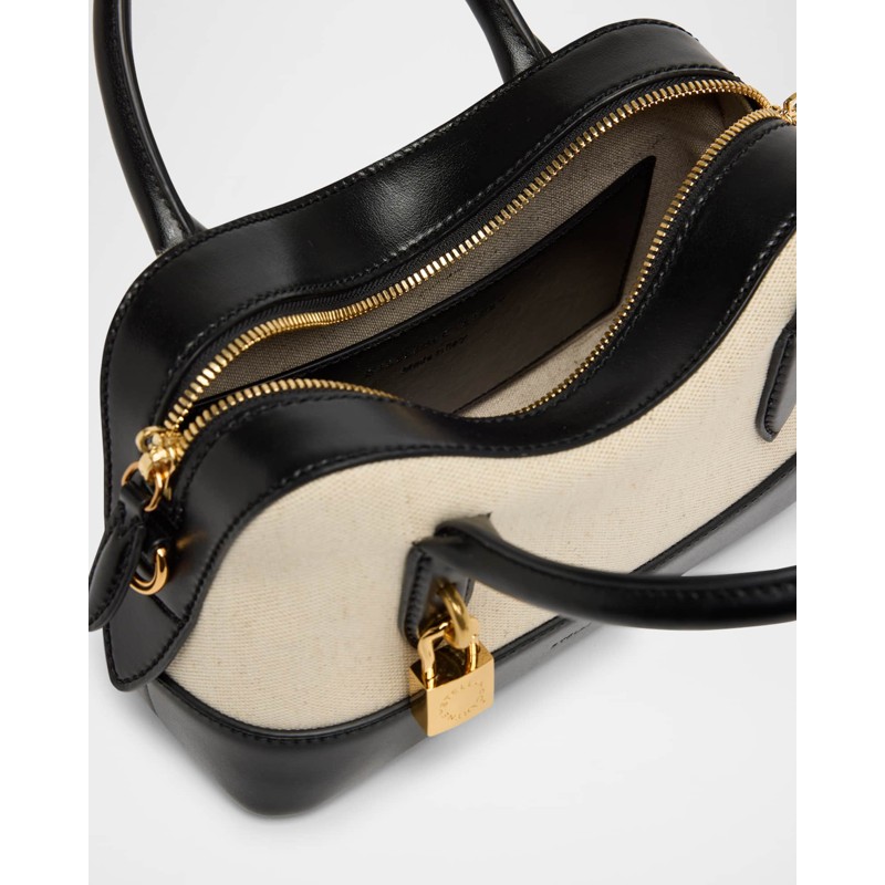 A Stella McCartney Bolsa Handle Stella Ryder Small Cotton Canvas & Eco Alter Mat interpreta o estilo Handle em design de mão, com arquitetura definida com presença feminina e estrutura impecável. Materiais como canvas, com alça de mão.