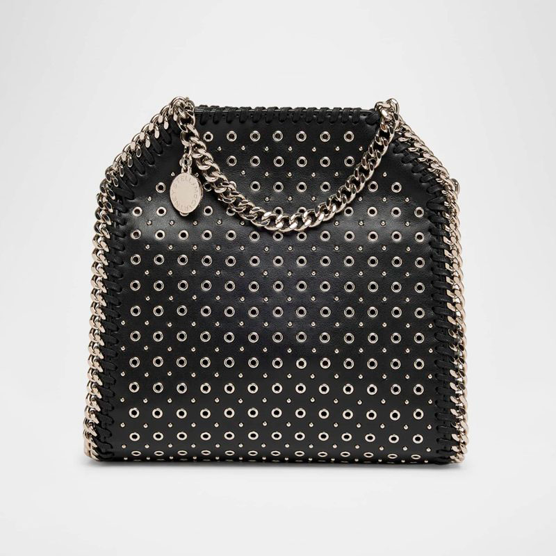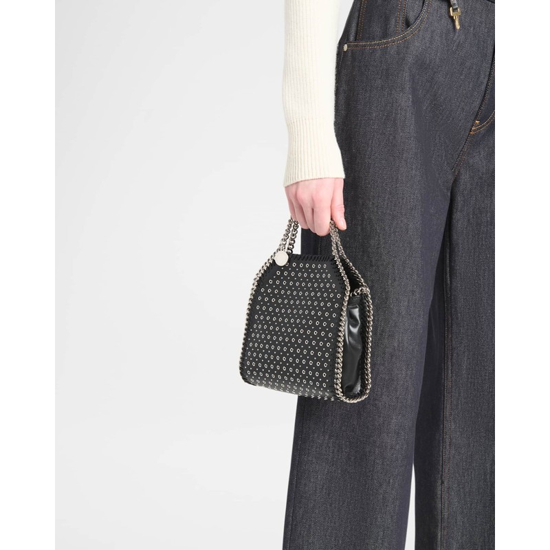 A Stella McCartney Bolsa Handle Falabella Tiny Eyelet Alter Mat interpreta o estilo Handle em design de mão, com arquitetura definida com presença feminina e estrutura impecável. Com alça de mão.