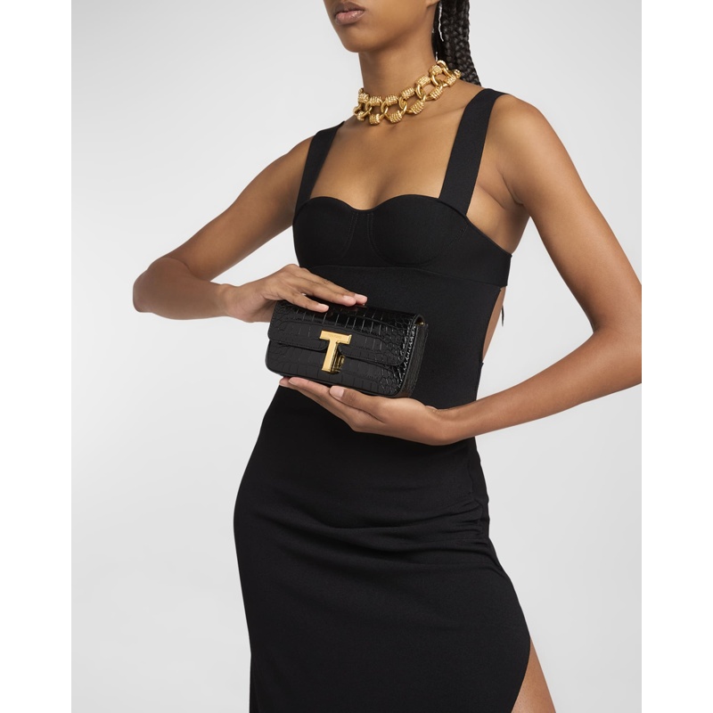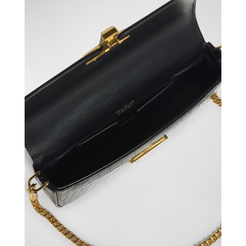 A Tom Ford Bolsa Crossbody Wallis Stamped Crocodile Mini Chain interpreta o estilo Crossbody em design de tiracolo, com corpo leve de vocação urbana. Materiais como couro exótico, com alça de corrente, alça tiracolo ajustável.