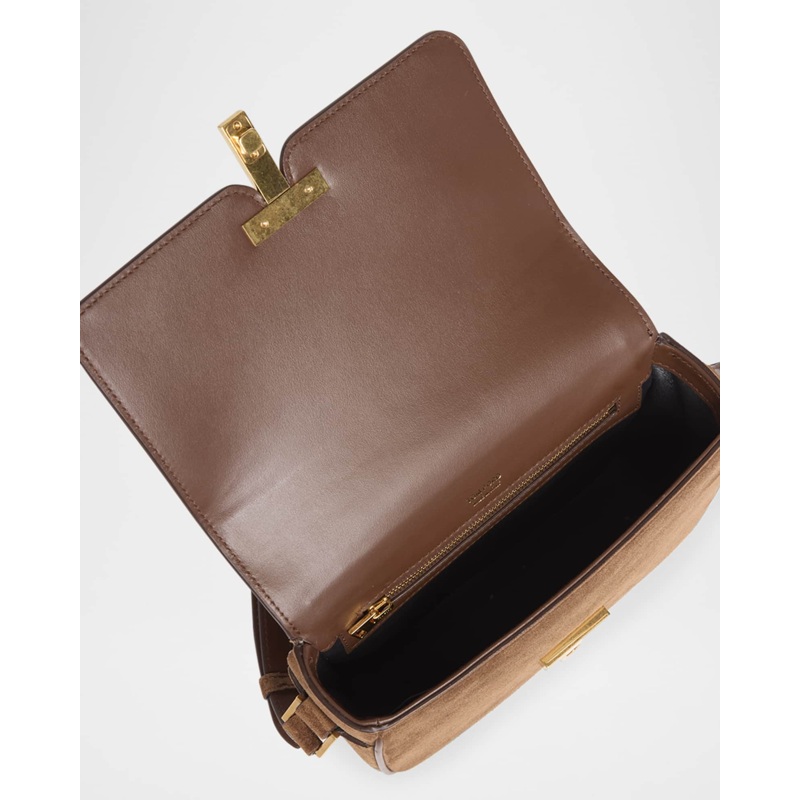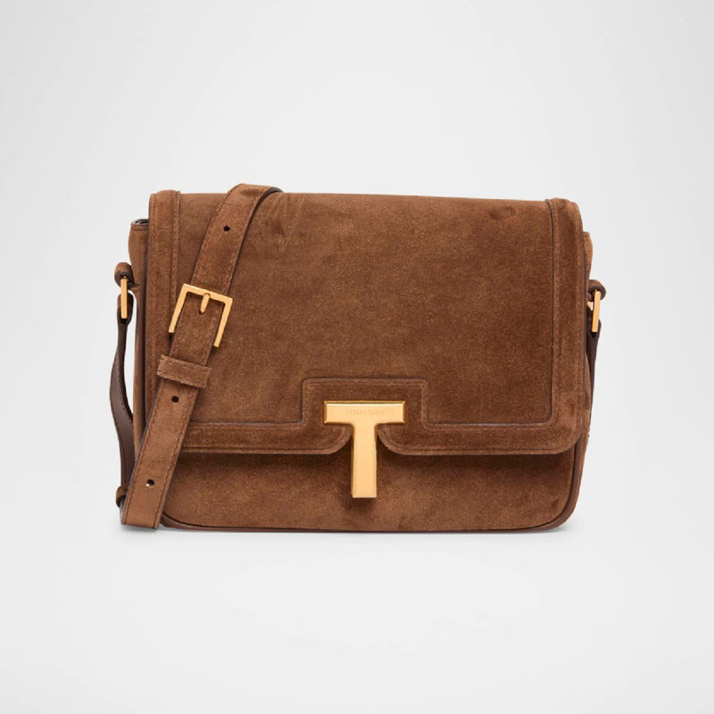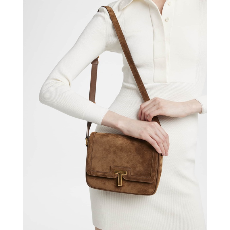 A Tom Ford Bolsa Shoulder Wallis Small Flap in Suede interpreta o estilo Shoulder em design de ombro, com silhueta que abraça o corpo e otimiza mobilidade. Materiais como camurça, com alça de ombro.