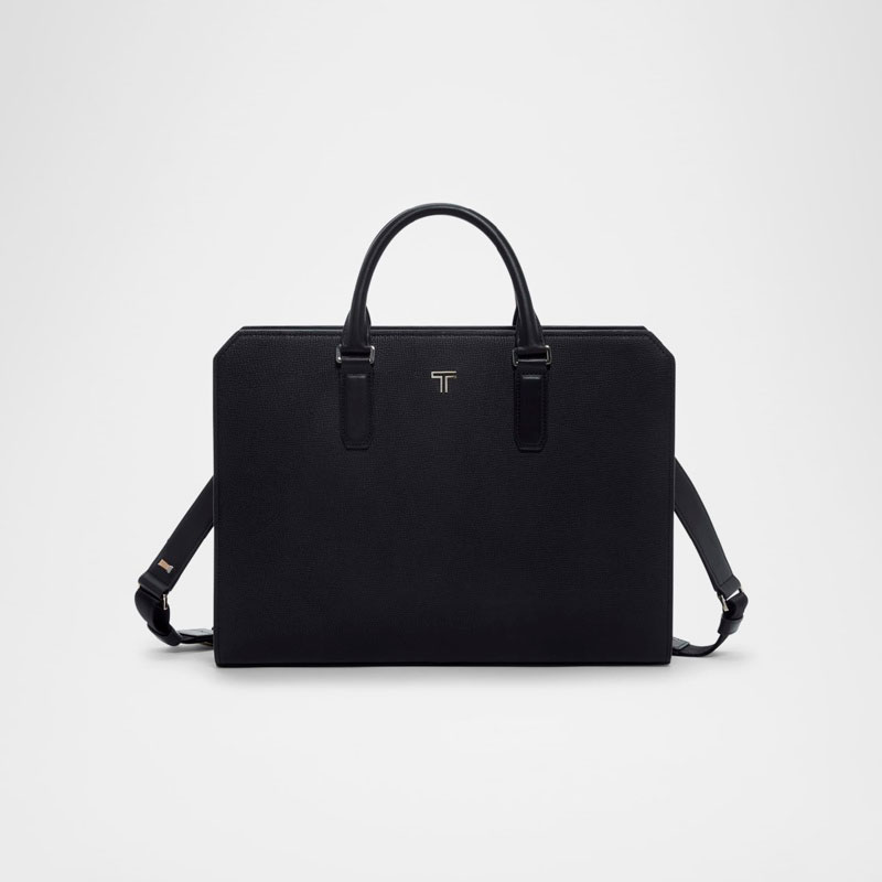 Assinada por Tumi, A Bolsa Mochila Navigation é uma mochila em couro de bezerro. Conta com zíper superior e corrente metálica.
