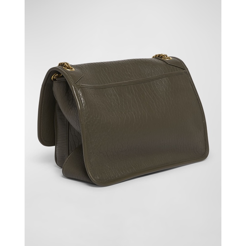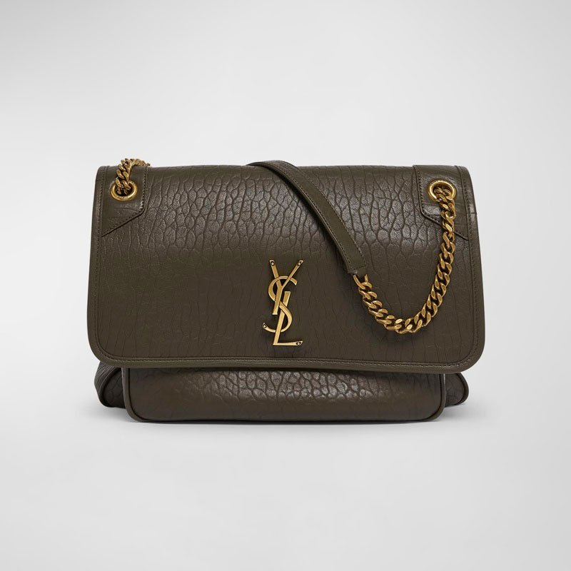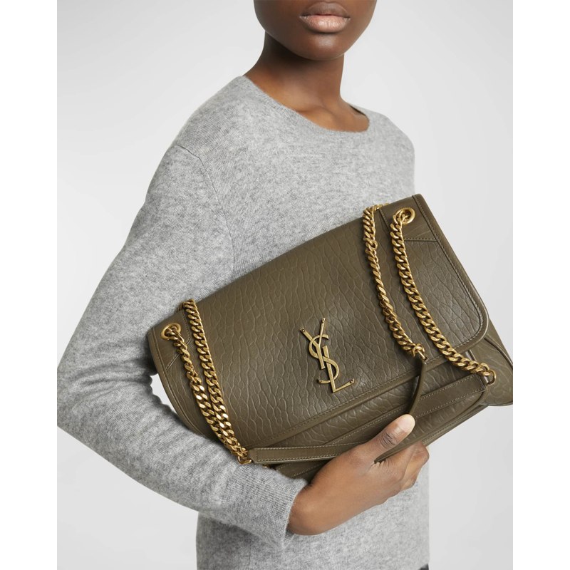 Assinada por YSL - Yves Saint Laurent, A Bolsa Crossbody Niki Large YSL in Lambsk é uma crossbody em couro, com monograma icônico. Apresenta monograma YSL em metal e ferragens em tom dourado. Conta com zíper superior e corrente metálica. Medidas aprox.: 23 x 32 x 8 cm e Origem: Itália