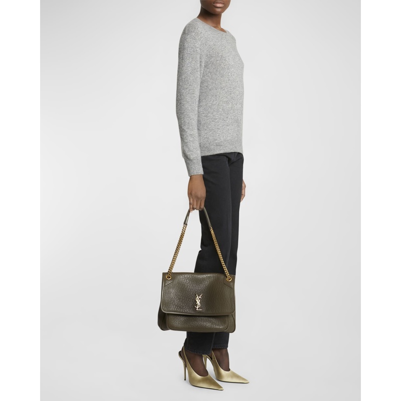 No styling, A Bolsa Crossbody Niki Large YSL in Lambsk vai do denim à seda sem esforço — um curinga YSL - Yves Saint Laurent para hoje e sempre.