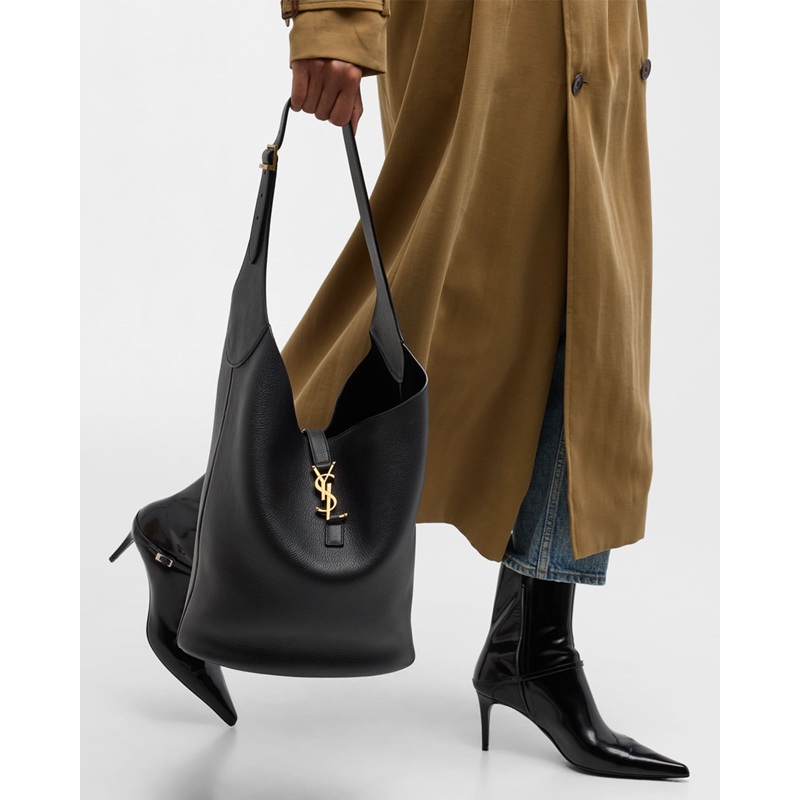 Construída em couro, com couro granulado, a peça evidencia o monograma YSL em metal e arquitetura elegante. O interior foi pensado para a rotina: organização intuitiva e espaço na medida certa.