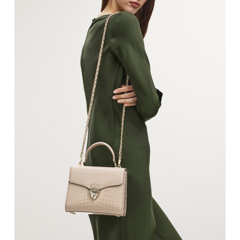 Aspinal Of London eleva o cotidiano com esta handle de apelo contemporâneo. A Bolsa Handle Midi Mayfair combina linhas precisas e proporções equilibradas para um efeito de luxo discreto.