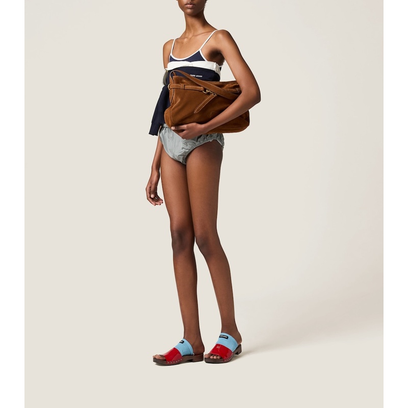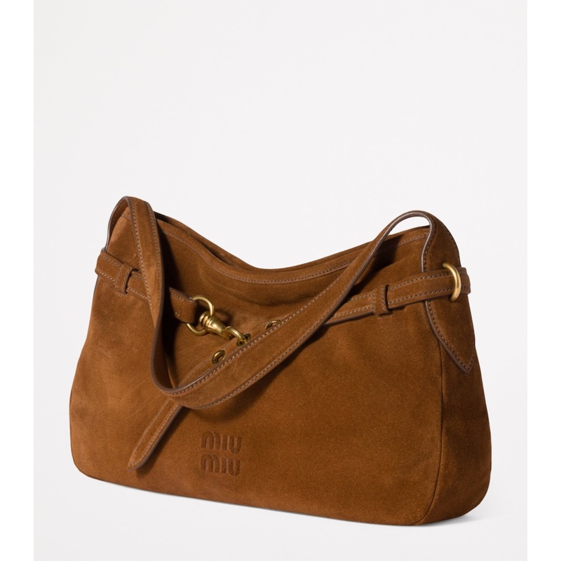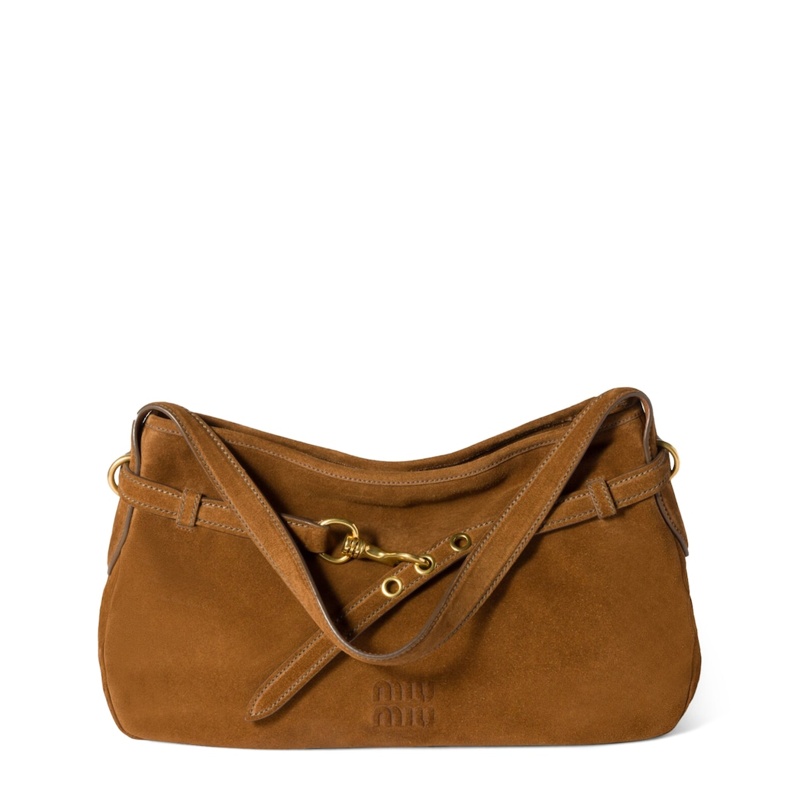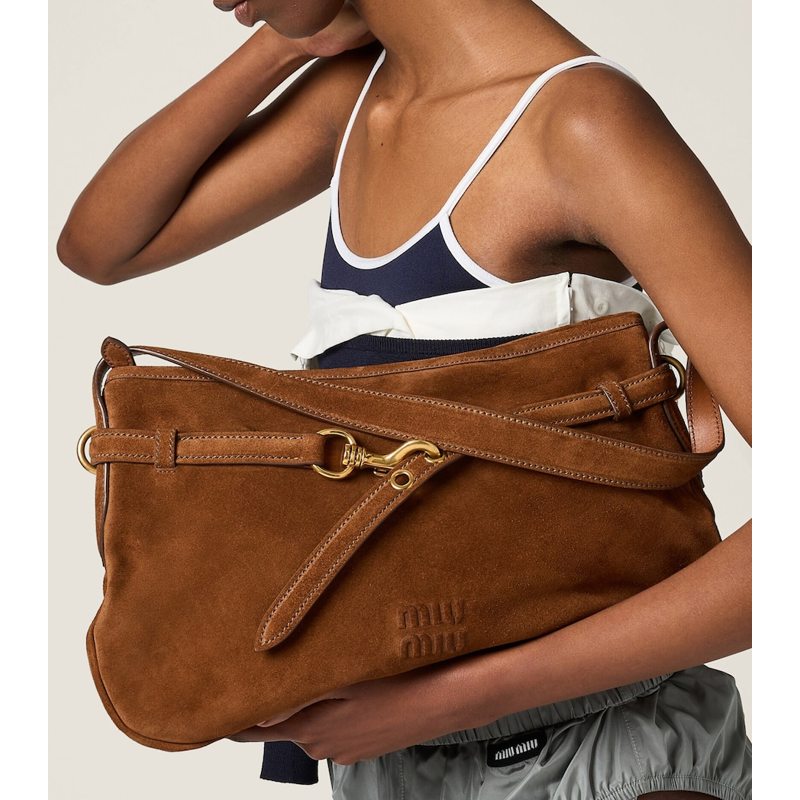 No styling, A Bolsa Shoulder Suede Aventure vai do denim à seda sem esforço — um curinga Miu Miu para hoje e sempre.