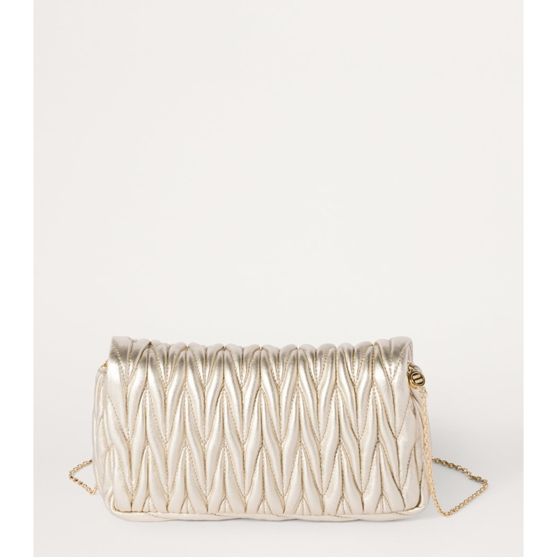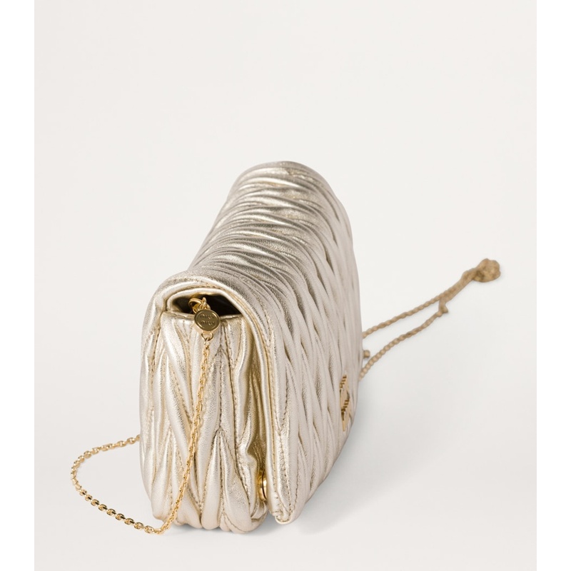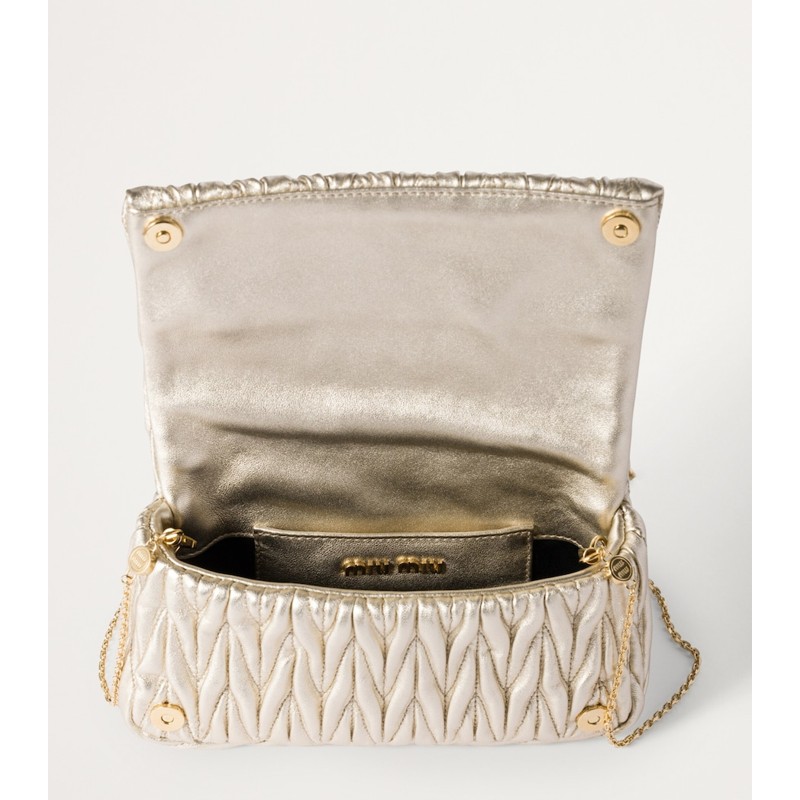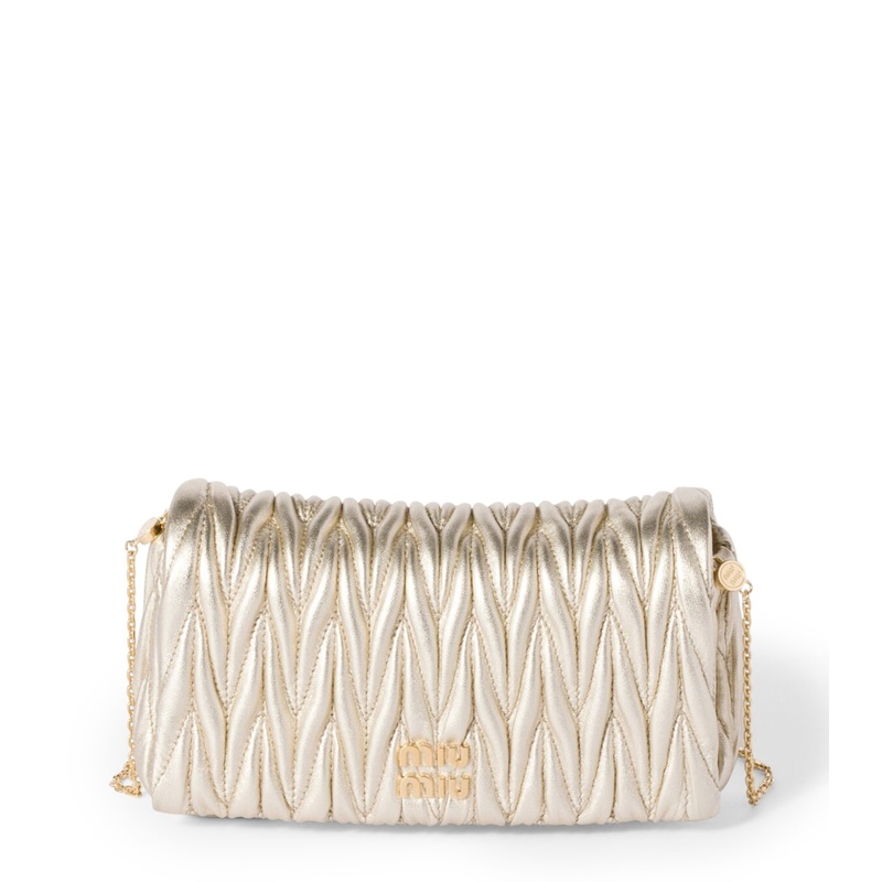 No styling, A Bolsa Shoulder Mini Matelassé vai do denim à seda sem esforço — um curinga Miu Miu para hoje e sempre.