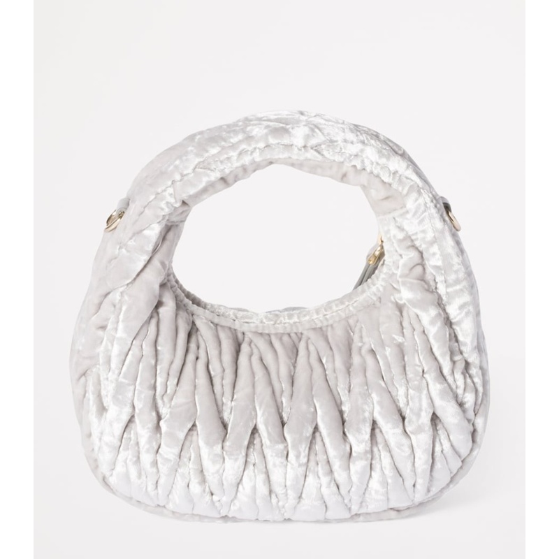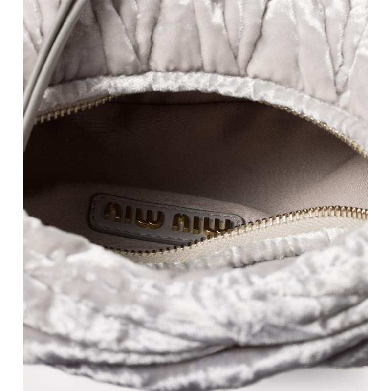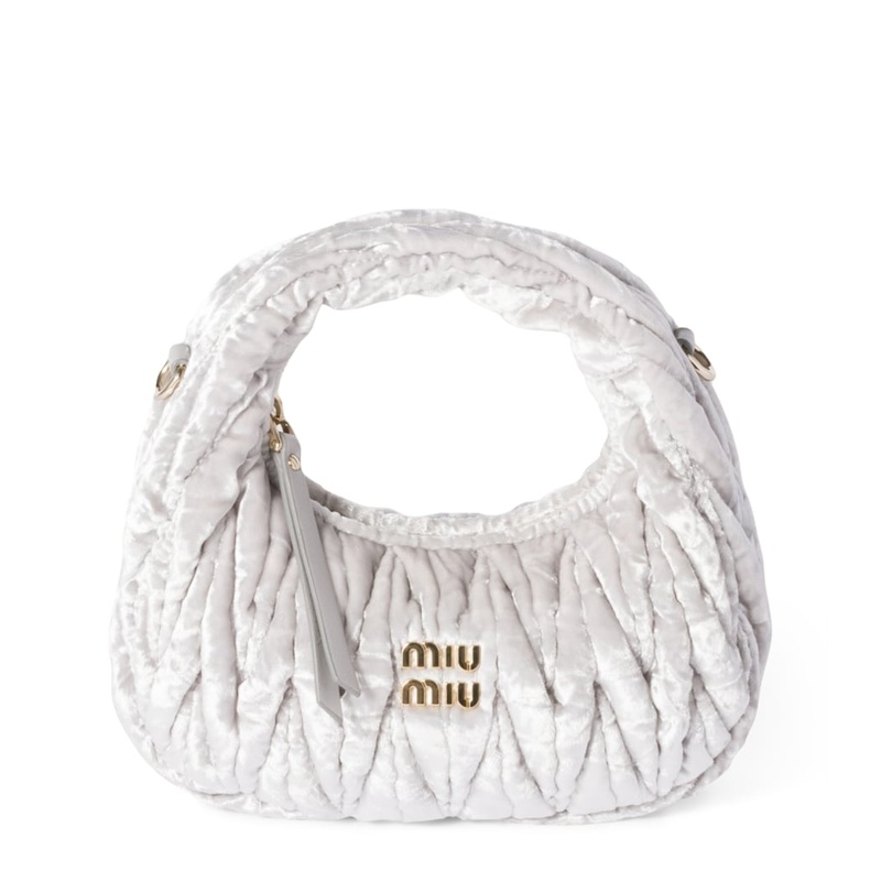 No styling, A Bolsa Handle Mini Velvet Wander vai do denim à seda sem esforço — um curinga Miu Miu para hoje e sempre.