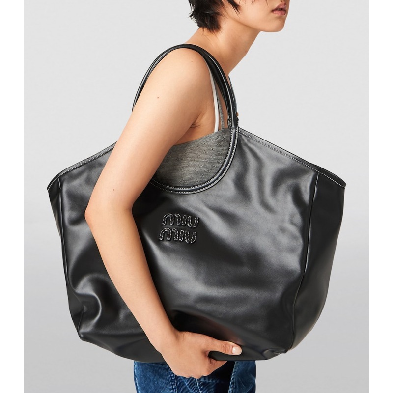 Shopping day ou expediente? A Bolsa Tote Ivy da Miu Miu dá conta com presença e proporção impecável.