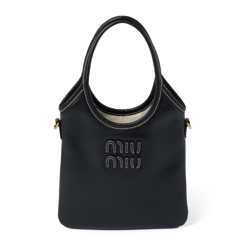No styling, A Bolsa Tote Calf Ivy vai do denim à seda sem esforço — um curinga Miu Miu para hoje e sempre.