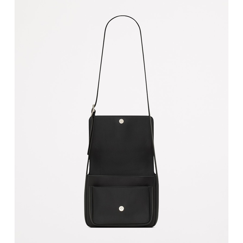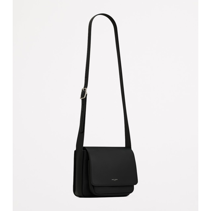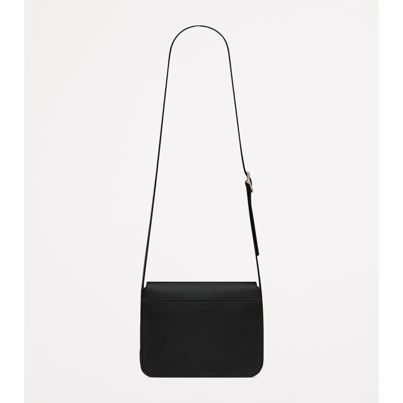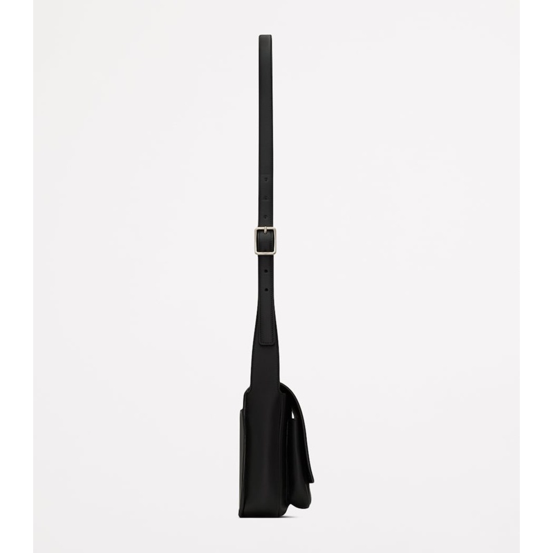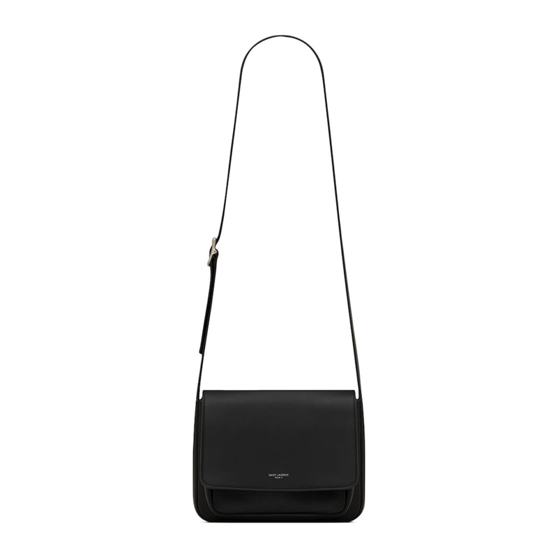Produzida em materiais de alto padrão, recebe acabamento liso e destaca monograma YSL em metal. A aba frontal protege itens e distribui o peso com conforto.