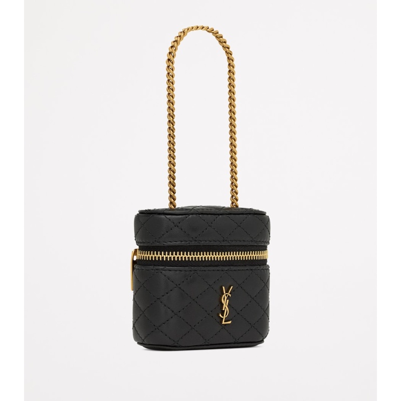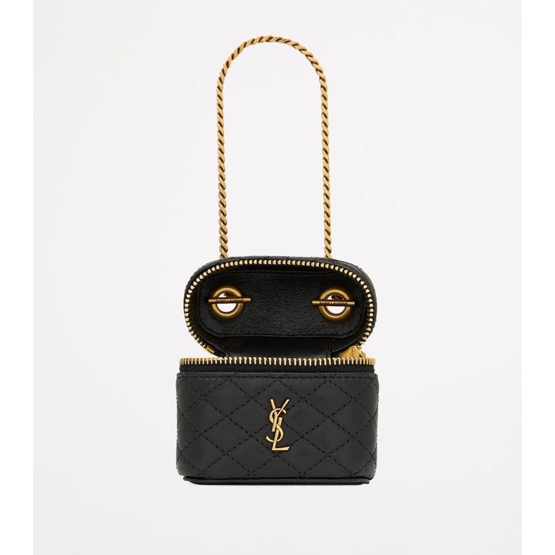 Com DNA YSL - Yves Saint Laurent, A Bolsa Necessaire Micro Gabby Quilted eleva a categoria necessaire ao combinar materiais de alto padrão, acabamento matelassê/acolchoado e monograma YSL em metal.