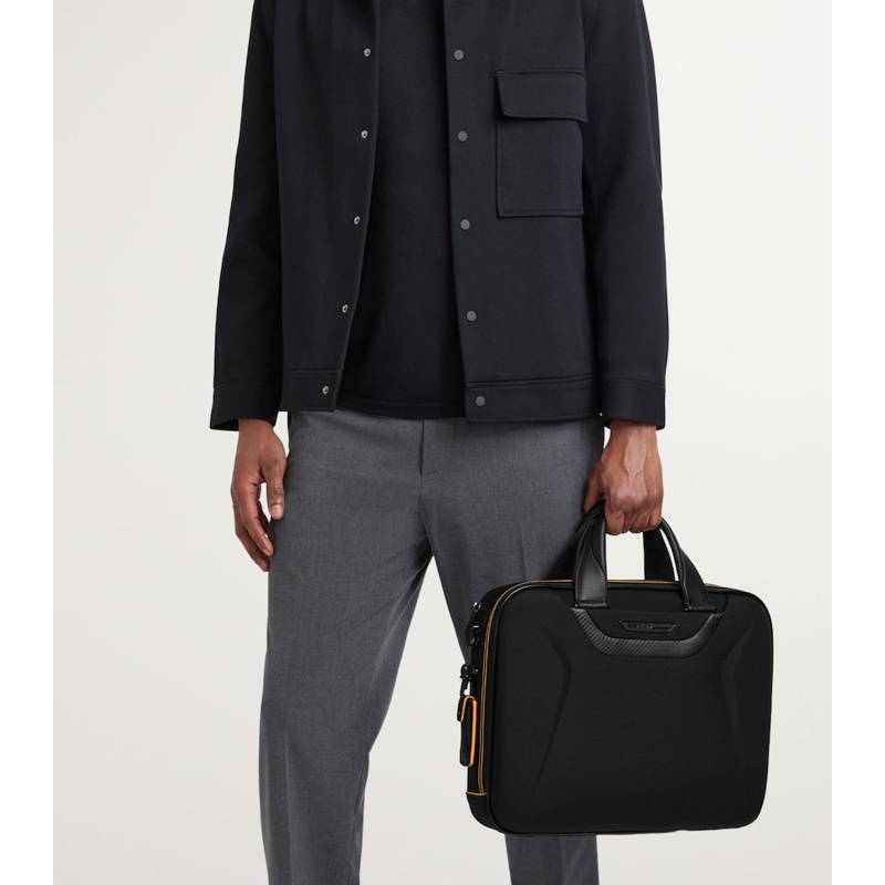 Assinada por Tumi, A Bolsa Messenger Collab x McLaren Axle é uma messenger de construção primorosa. A aba frontal protege itens e distribui o peso com conforto ao longo do dia.
