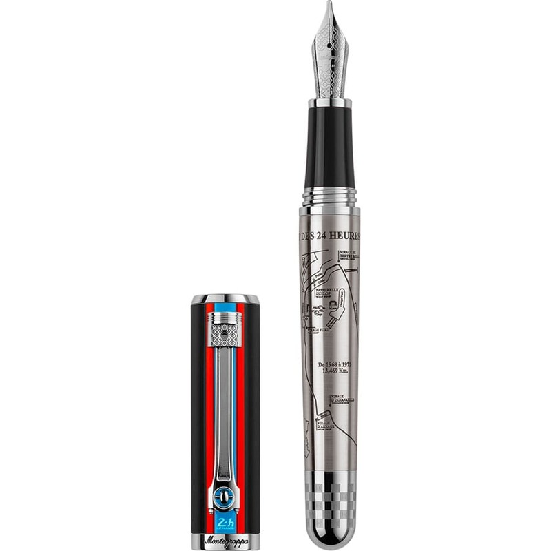A Caneta Tinteiro Montegrappa 24h Le Mans Legende - A Century of Excellence homenageia o centenário da lendária corrida de Le Mans, capturando a essência da velocidade. Esta edição limitada é uma obra-prima da artesania italiana.