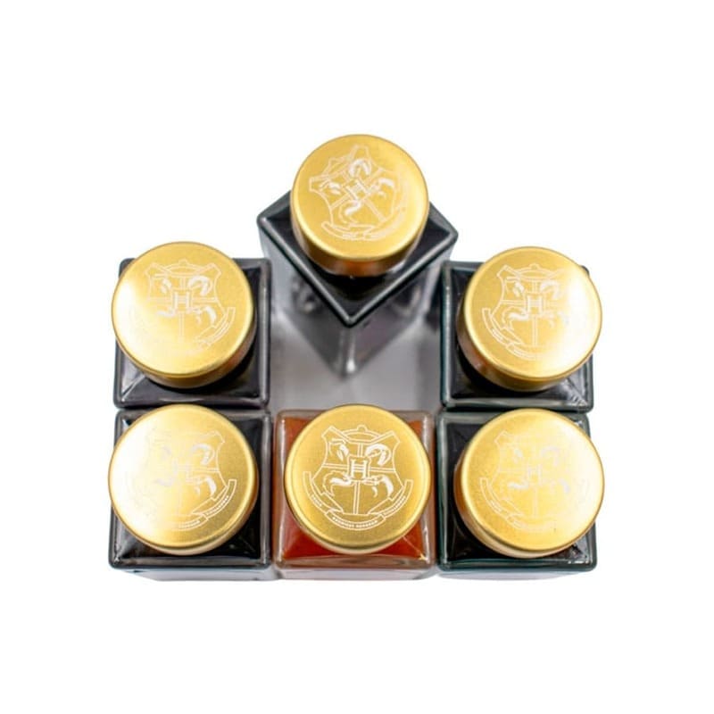 O frasco de vidro premium, com design elegante, contém uma tinta preta intensa que reflete a aura sombria dos Dementadores. A embalagem é adornada com detalhes temáticos, garantindo autenticidade.