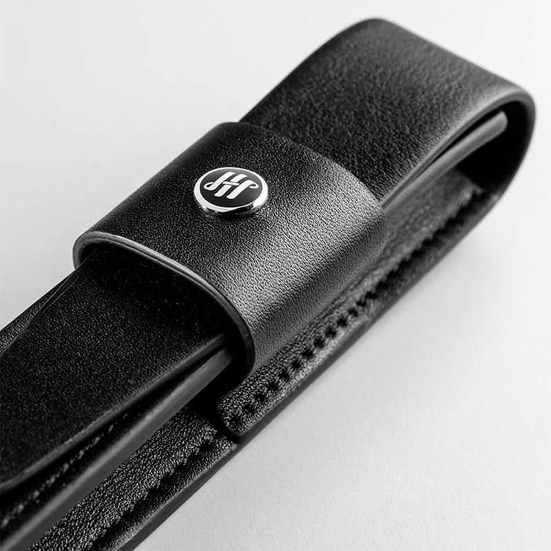Feito em resina preta brilhante com detalhes em metal polido, este porta-caneta possui um design minimalista e sofisticado. Gravuras sutis do logotipo Montegrappa conferem autenticidade e charme.
