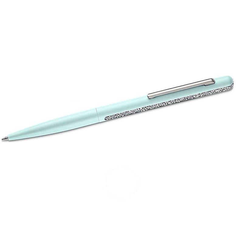 O corpo em metal cromado é adornado com cristais Swarovski que criam um efeito de shimmer deslumbrante. O clipe elegante e o design ergonômico garantem funcionalidade com um toque de glamour.