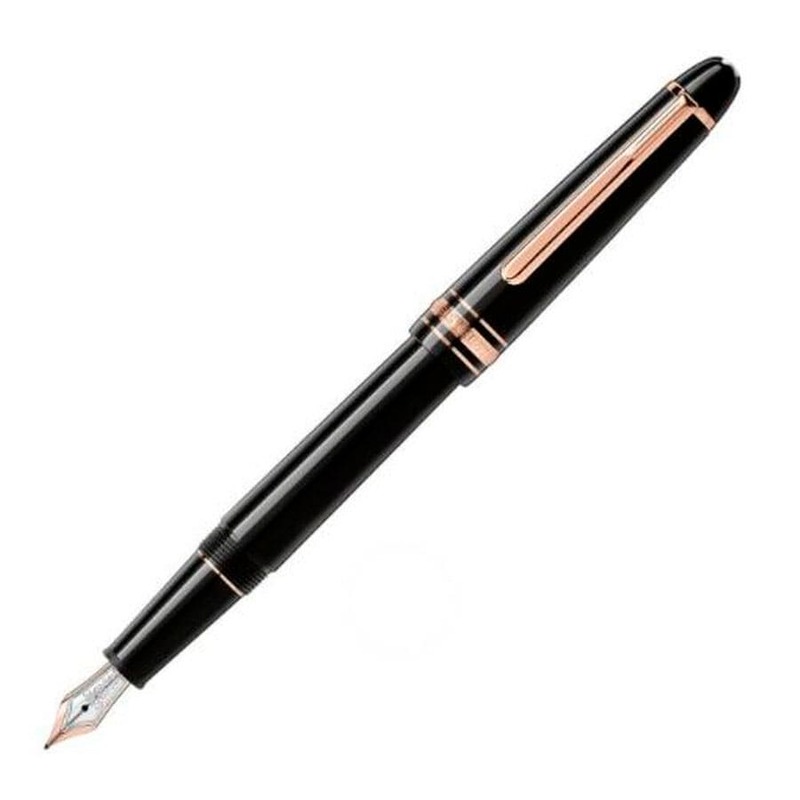 O corpo em resina preta preciosa, com detalhes em ouro rosé polido, é coroado pelo icônico emblema da estrela branca Montblanc. A pena em ouro 18K com ponta fina garante precisão e elegância.