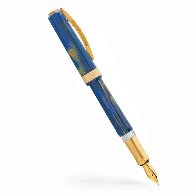 O corpo em resina azul brilhante, com detalhes em ouro, exala sofisticação e vivacidade. A pena em ouro 18K com ponta média e o icônico clipe da Visconti adicionam um toque de opulência.