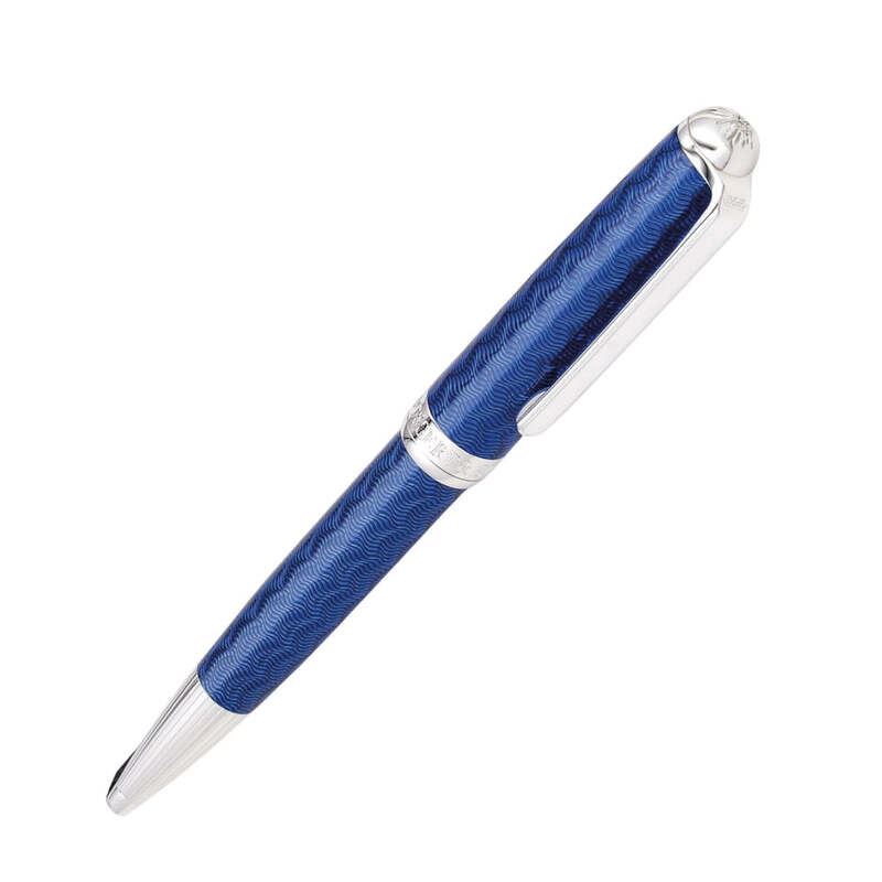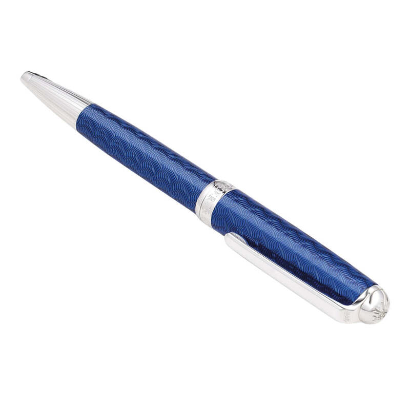 O corpo em resina azul royal, com detalhes em metal cromado, exala sofisticação e vivacidade. O acabamento artesanal adiciona autenticidade e elegância, tornando esta caneta uma verdadeira obra de arte.