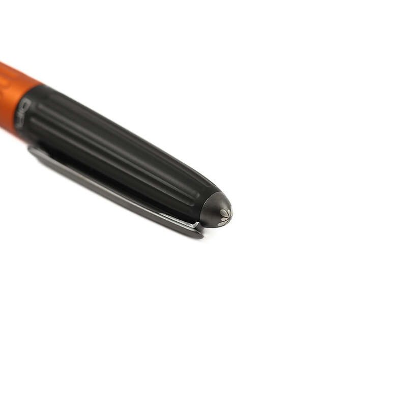 O corpo em alumínio anodizado da caneta exala um design contemporâneo e sofisticado, enquanto os detalhes em metal cromado adicionam funcionalidade e elegância.