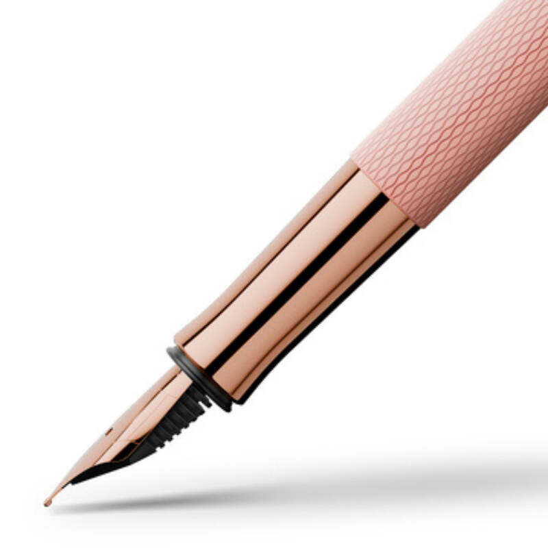 A Graf von Faber-Castell Caneta Tinteiro Guilloche Rose Blush Ouro 18k celebra a escrita tinteiro com proporções equilibradas e refinamento técnico. Corpo em ouro. Equipada com pena em ouro...