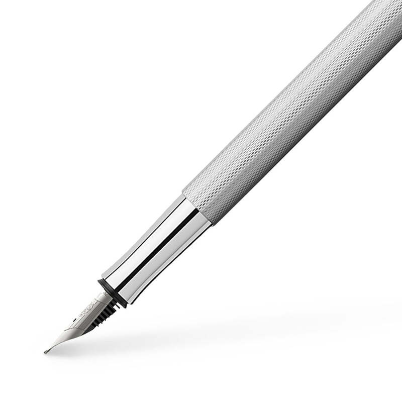 A Graf von Faber-Castell Caneta Tinteiro Guilloche Rhodium Ouro 18k celebra a escrita tinteiro com proporções equilibradas e refinamento técnico. Corpo em ouro. Equipada com pena em ouro 18K com acabamento ródio.