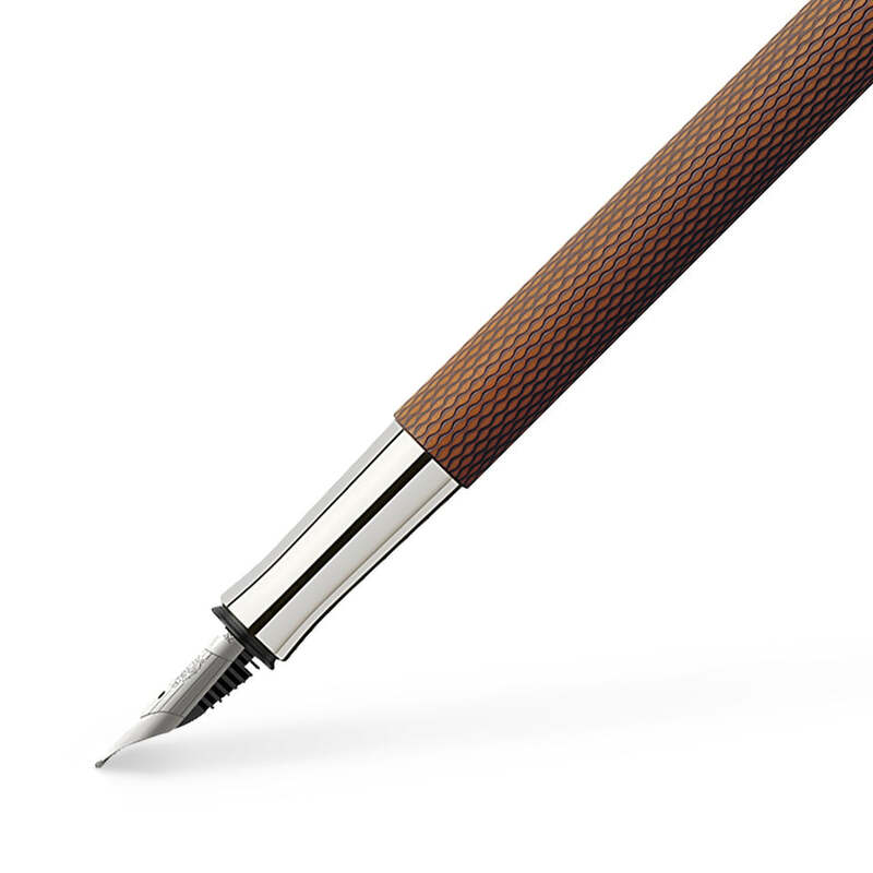 A Graf von Faber-Castell Caneta Tinteiro Guilloche Cognac Ouro 18k celebra a escrita tinteiro com proporções equilibradas e refinamento técnico. Corpo em ouro. Equipada com pena em ouro 18K.