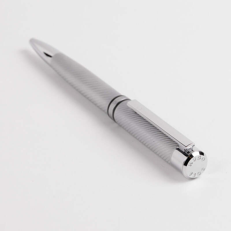 A Hugo Boss apresenta a Esferográfica, uma caneta esferográfica, em metal trabalhado e latão, acabamento fosco/matte e gravado e preto, feita para escrita consistente e presença moderna. Ela traz assinatura de design da marca. Com tinta esferográfica de baixa viscosidade, oferece traço limpo, secagem rápida e excelente rendimento. Destaques do modelo: preto, acabamento fosco/matte e gravado e metal trabalhado e latão.