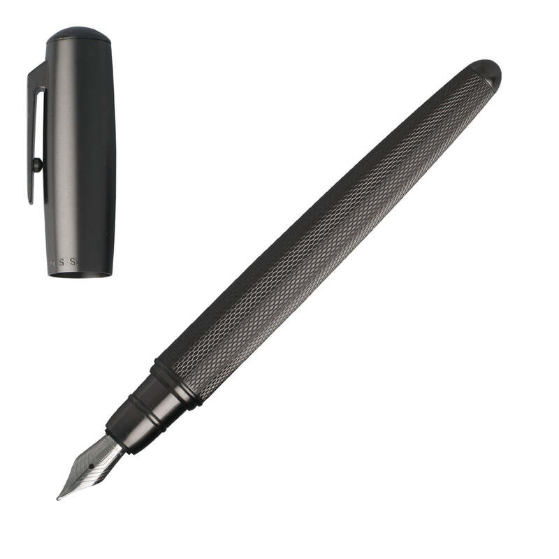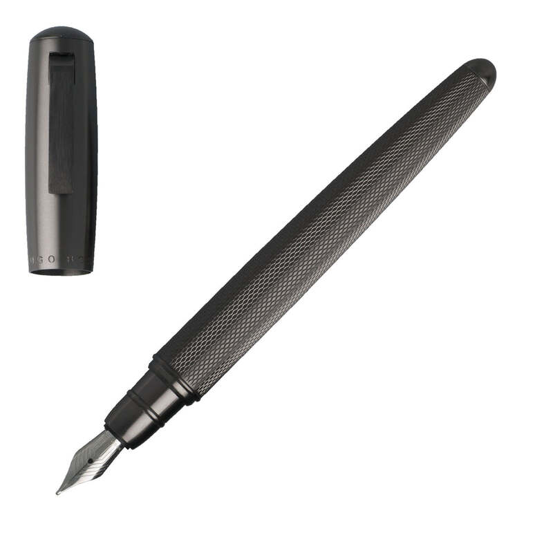 A Hugo Boss Caneta Tinteiro Pure Matte Dark Chrome celebra a escrita tinteiro com proporções equilibradas e refinamento técnico.