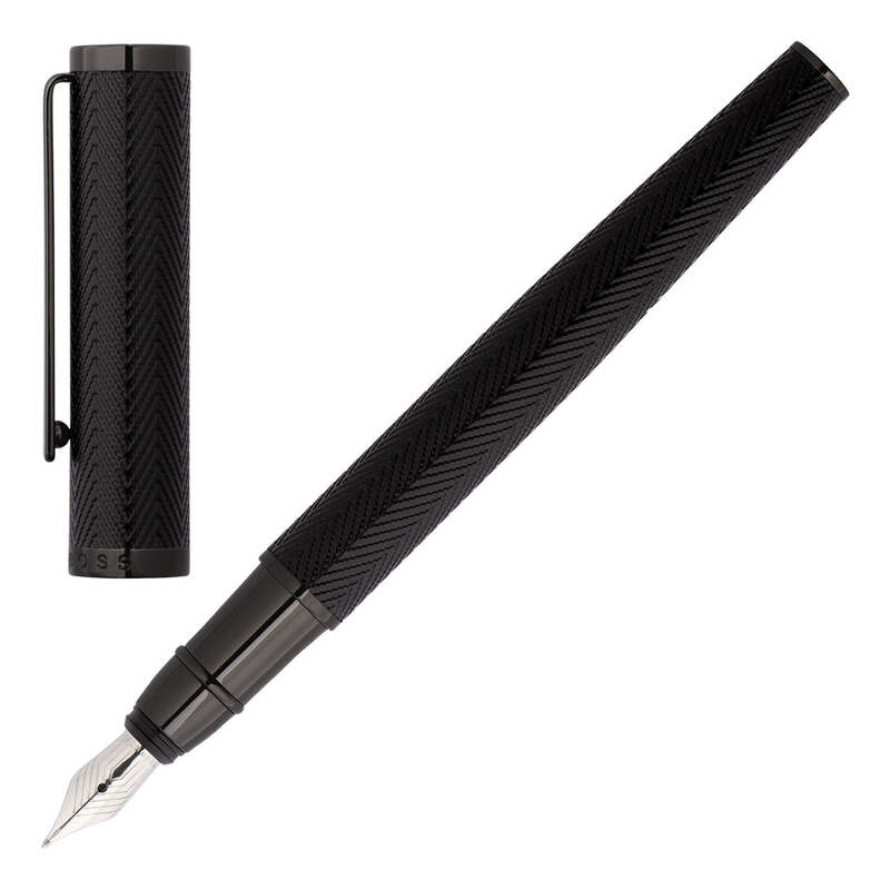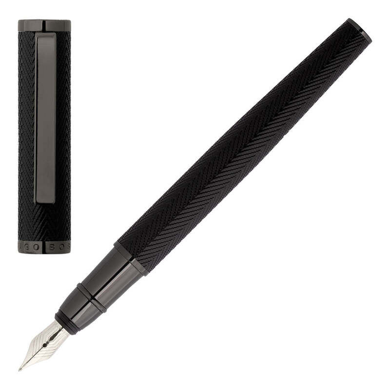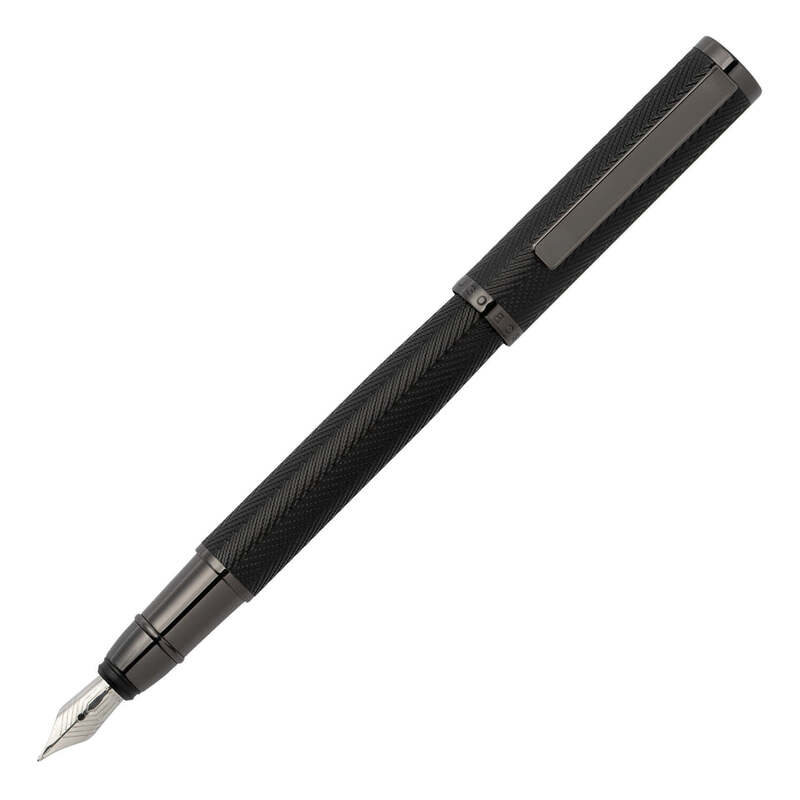 A Hugo Boss Caneta Tinteiro Formation Herringbone Gun celebra a escrita tinteiro com proporções equilibradas e refinamento técnico.