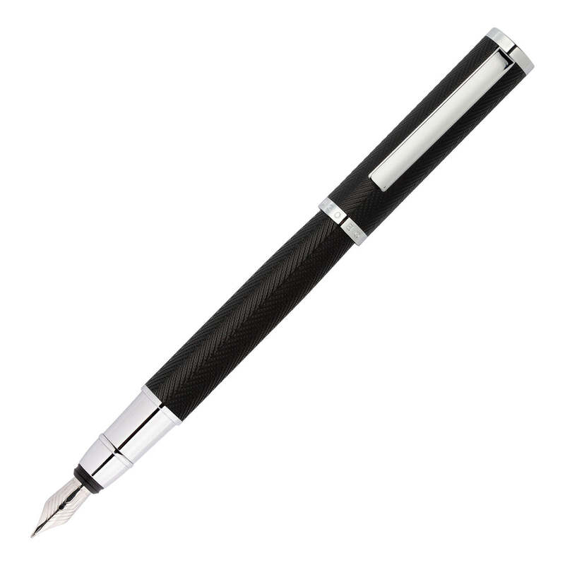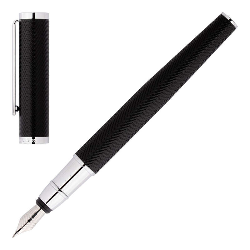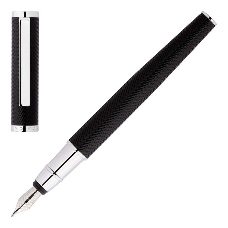 A Hugo Boss Caneta Tinteiro Formation Herringbone Chrome celebra a escrita tinteiro com proporções equilibradas e refinamento técnico.