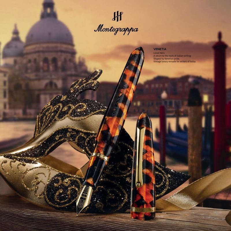 A Montegrappa Caneta Tinteiro Venetia Havana Amber - Ouro 14k celebra a escrita tinteiro com proporções equilibradas e refinamento técnico. Corpo em ouro. Equipada com pena em ouro 14K.