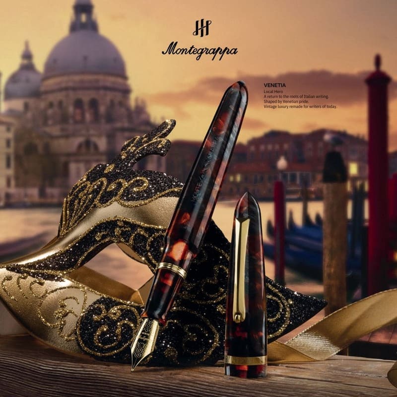 A Montegrappa Caneta Tinteiro Venetia Plume Agate - Ouro 14k celebra a escrita tinteiro com proporções equilibradas e refinamento técnico. Corpo em ouro. Equipada com pena em ouro 14K.