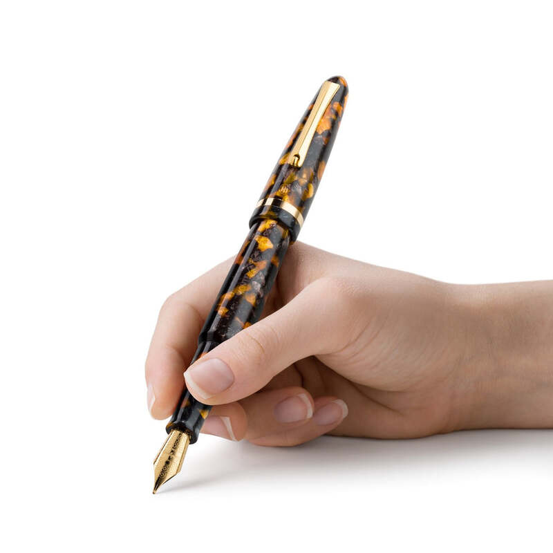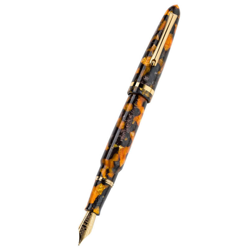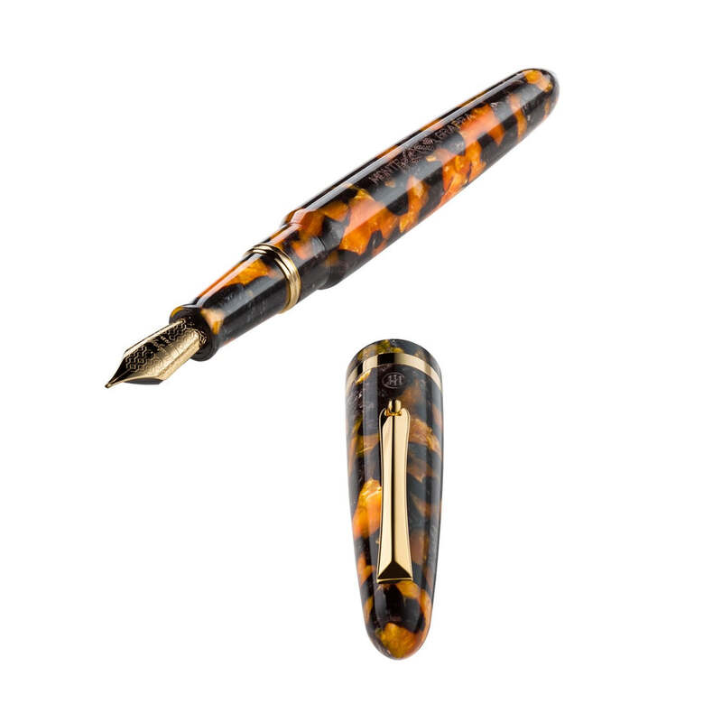 A Montegrappa Caneta Tinteiro Venetia Havana Amber Steel celebra a escrita tinteiro com proporções equilibradas e refinamento técnico. Equipada com pena em aço inoxidável.