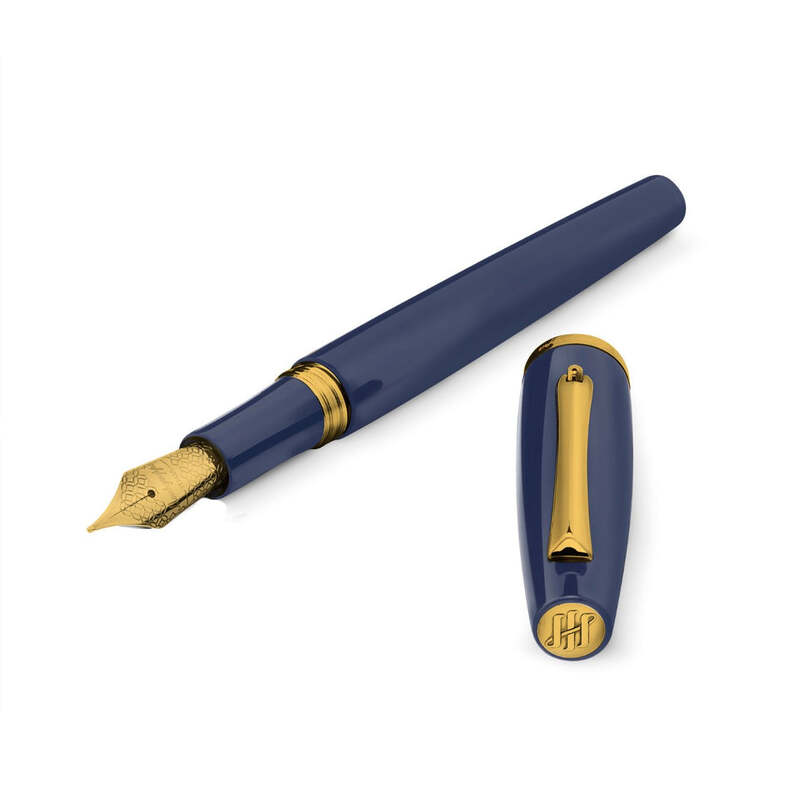 A Montegrappa Caneta Tinteiro Manager Navy Gold celebra a escrita tinteiro com proporções equilibradas e refinamento técnico. Corpo em ouro.Projetada para fluidez no traço, prioriza conforto no grip...