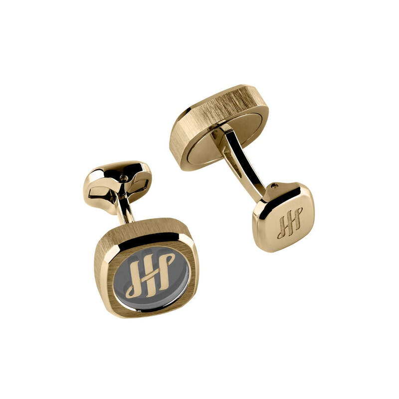 A Montegrappa Abotoaduras Quattro IP Gold eleva o dress code com abotoaduras de presença discreta e acabamento primoroso.