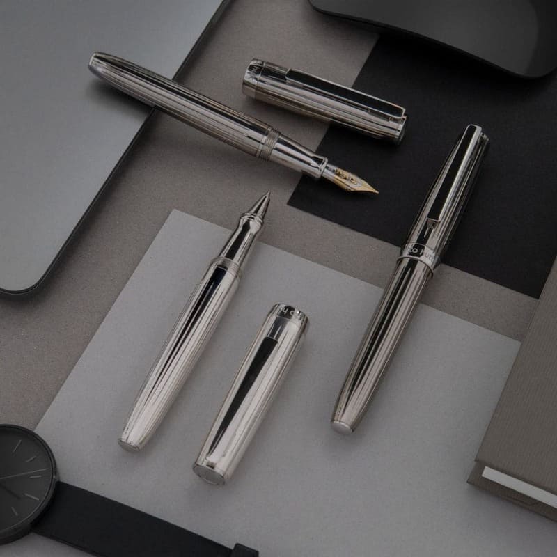 Companheira de agendas, assinaturas e correspondências, entrega um gesto preciso e presença sofisticada na mesa. Para melhor desempenho, usar tintas próprias para tinteiro, manter tampada quando não estiver em uso e realizar limpeza (flush) ao trocar de cor.
