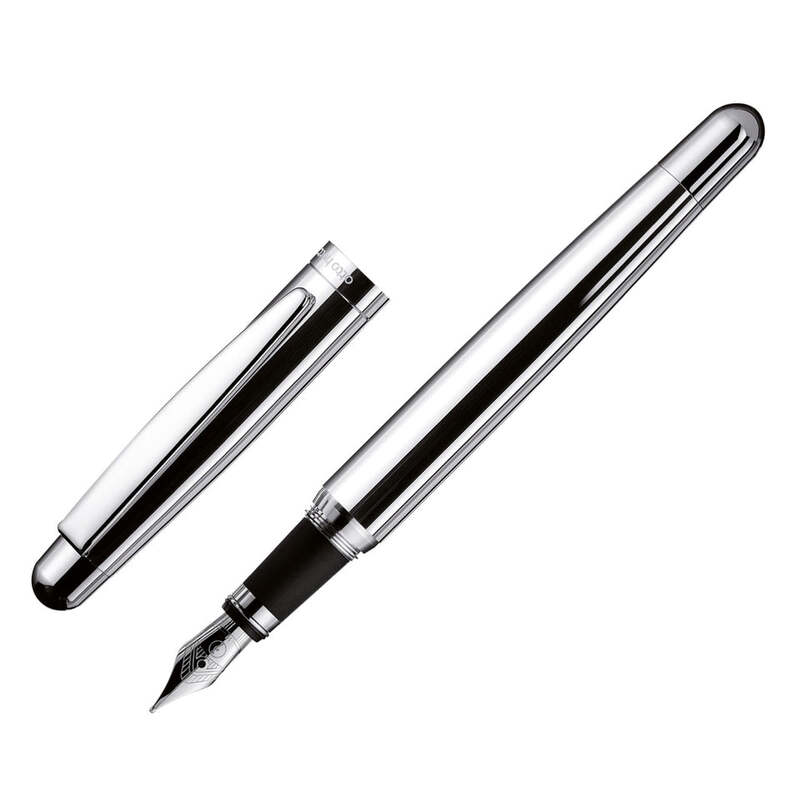 A Otto Hutt Caneta Tinteiro Design 02 Sterling Platin Shine celebra a escrita tinteiro com proporções equilibradas e refinamento técnico.