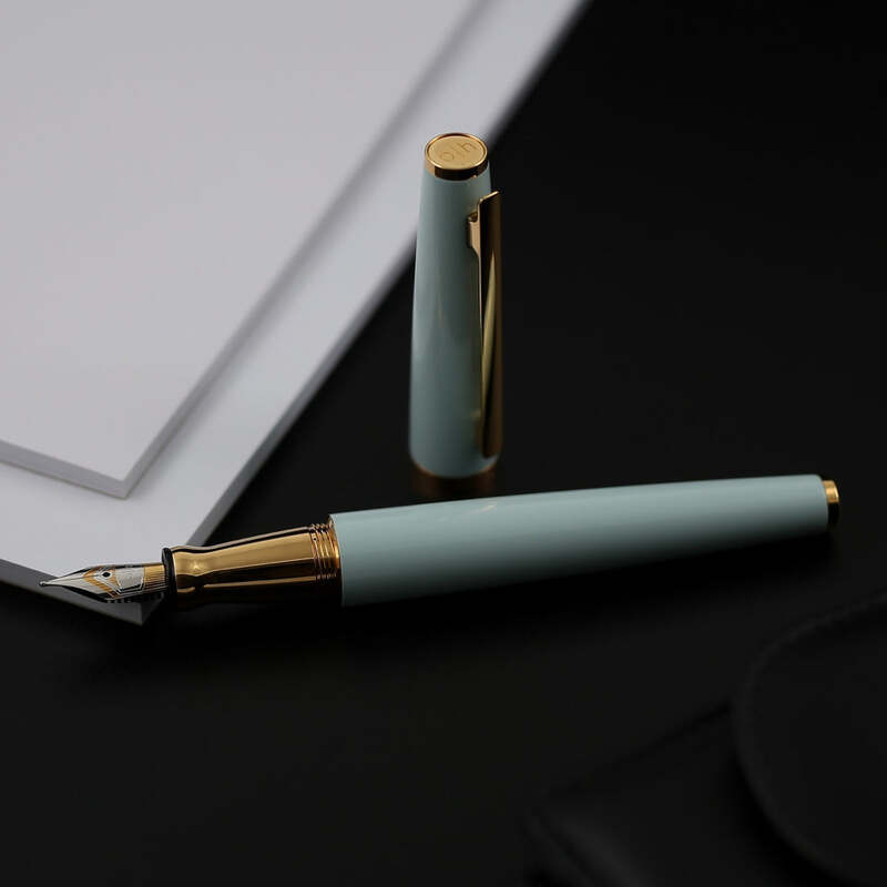 A Otto Hutt Caneta Tinteiro Design 06 Pistachio Gold celebra a escrita tinteiro com proporções equilibradas e refinamento técnico. Corpo em ouro.